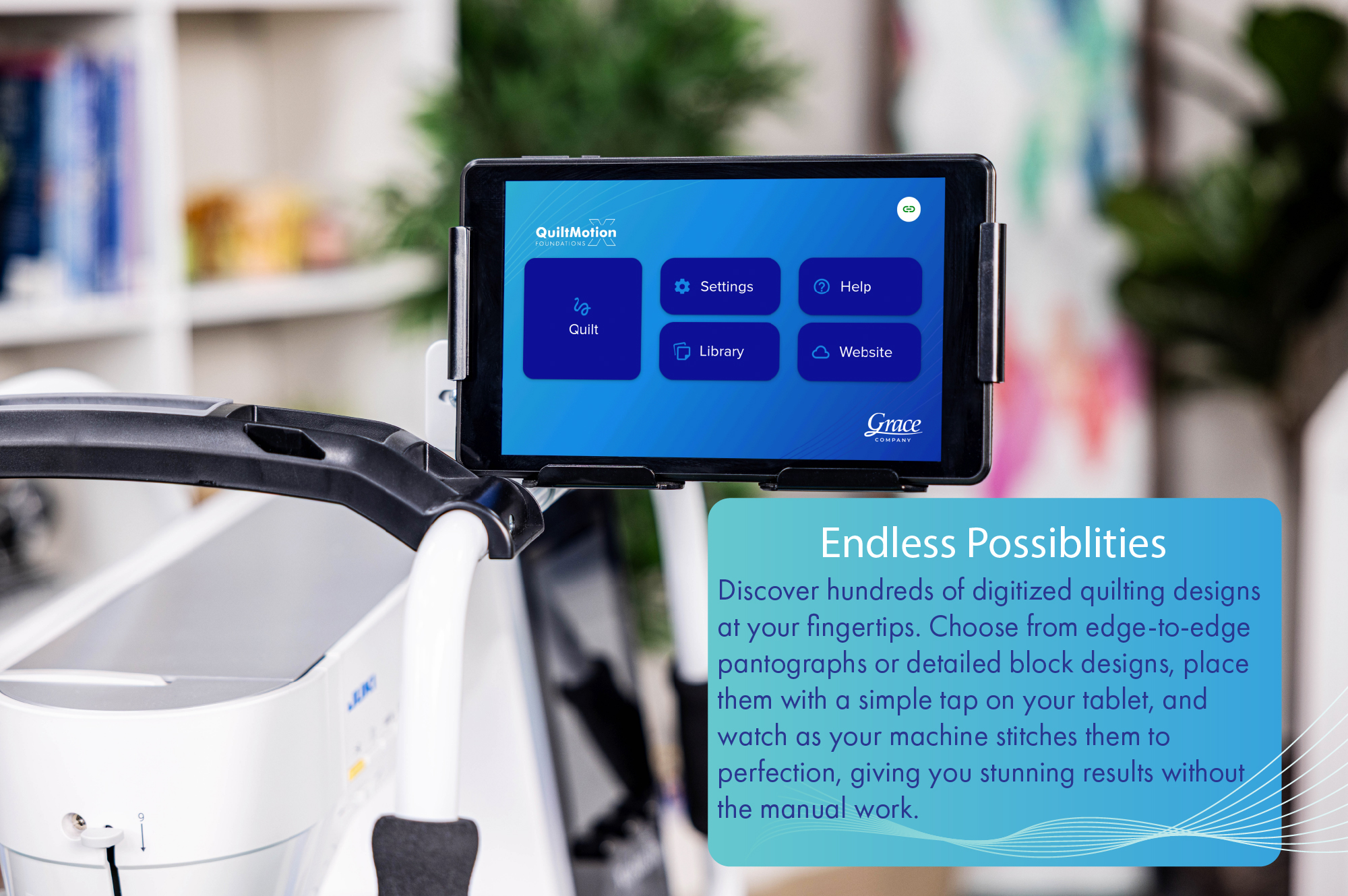 QuiltMotion X is compatible with any domestic sewing machine and is specifically designed for use with the Cutie Breeze quilting frame.