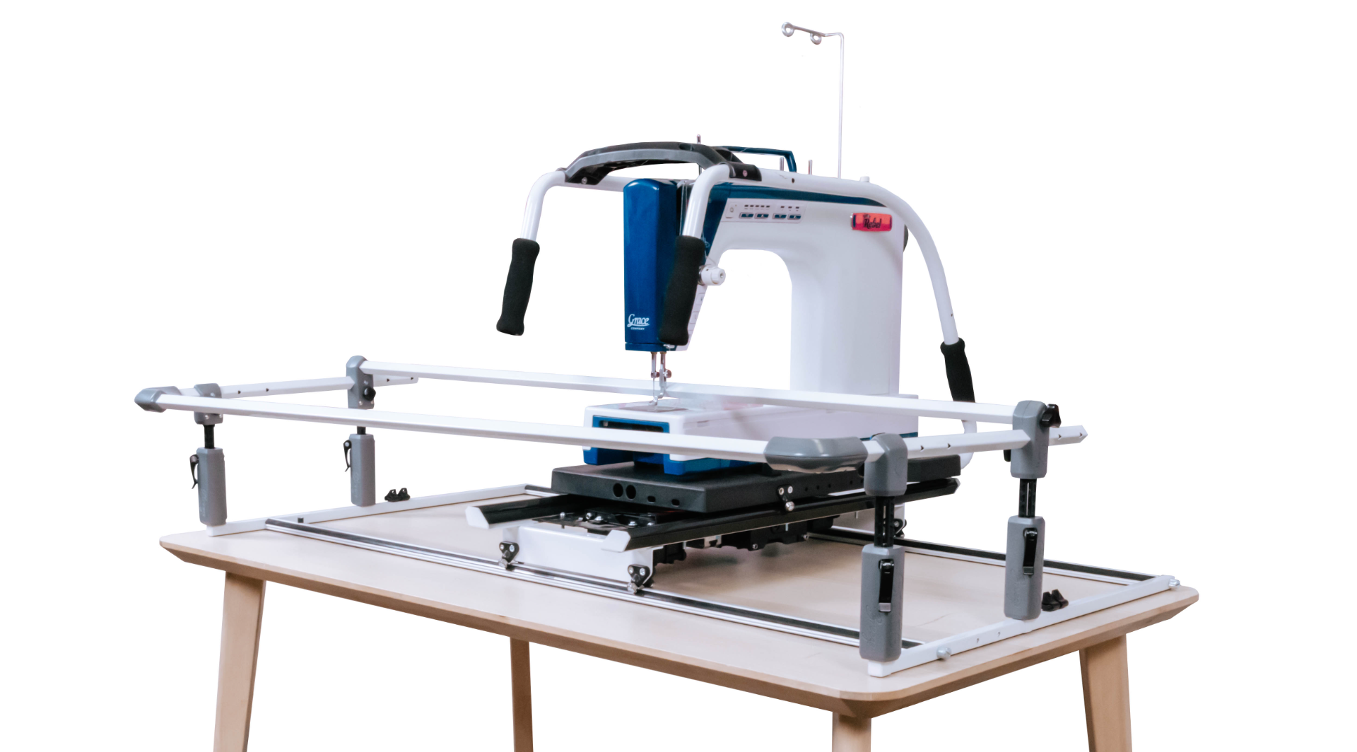 When you are ready to move to free motion, whether sitting down or on a fabric frame, the Little Rebel has built-in stitch regulation from our new optical encoder.
