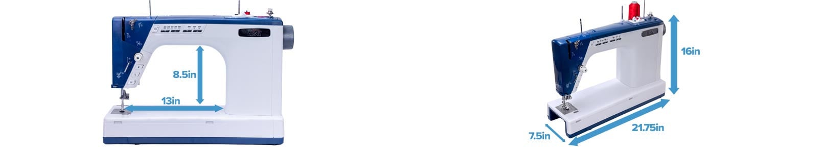 The Little Rebel sewing machine has a 13 inch throat length and over 8 inches of clearance to make sewing and quilting easier. Enjoy being able to have more room to work no matter if you are on a fabric frame or sit-down free motioning.